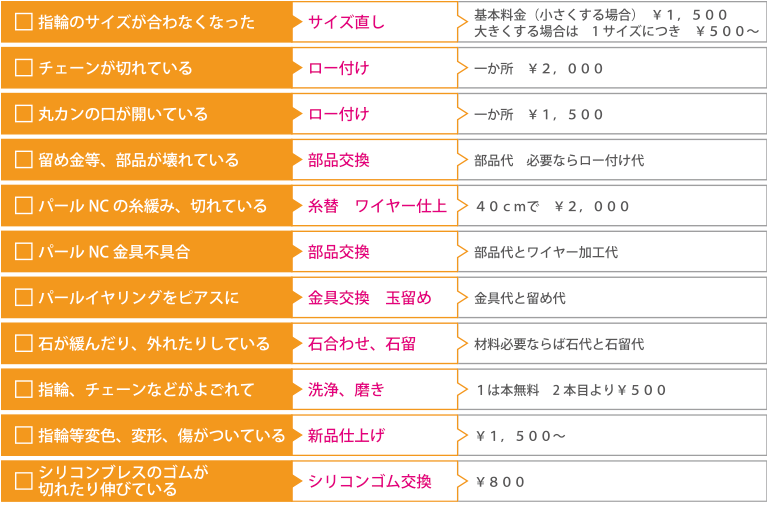 サイズ直し、鎖切れ、パールの糸替えなどは、通常翌日以降のお渡しが一般的ですが、お急ぎの場合、当日仕上げ(2時間以内)も可能です。